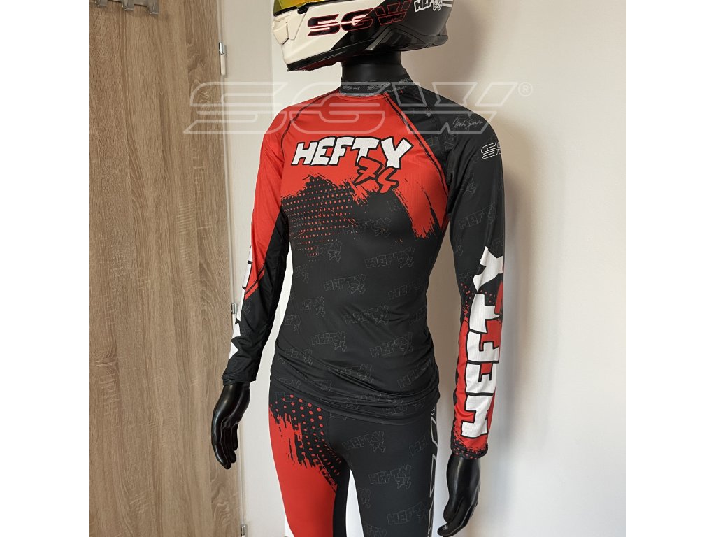 Univerzální funkční komplet ve dvojím provedení materiálu, s dlouhým rukávem a vlastním custom designem je navržené pro náročné sportovní aktivity – ať už jste na motorce, na tréninku nebo na výšlapu.