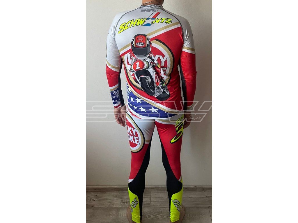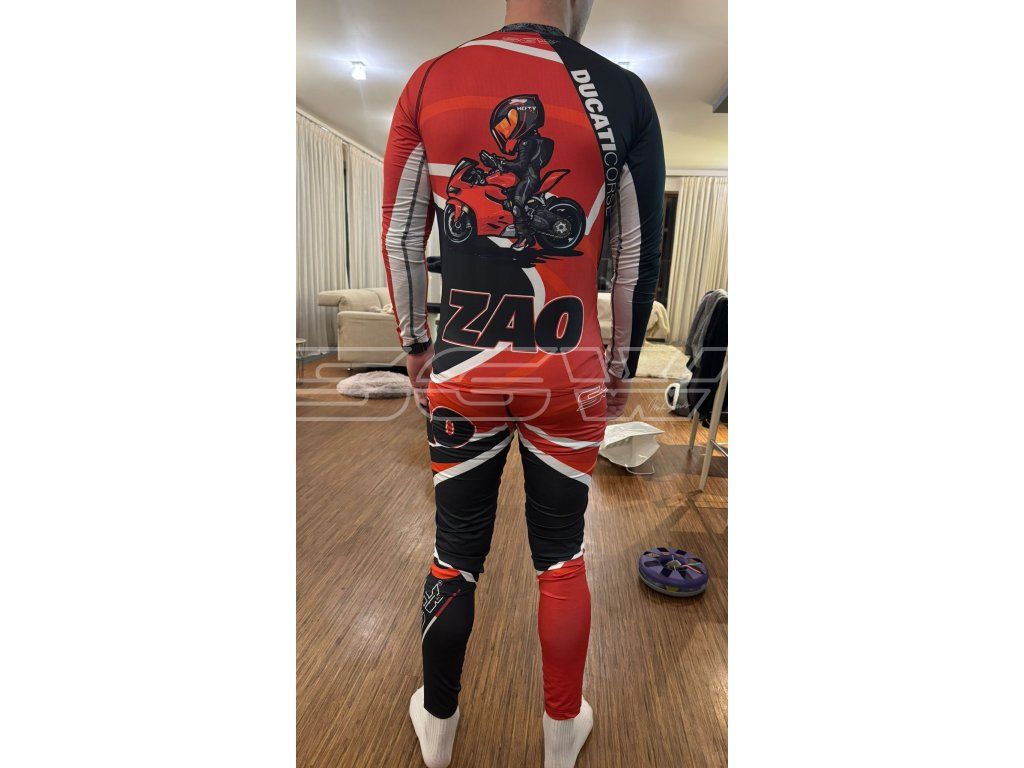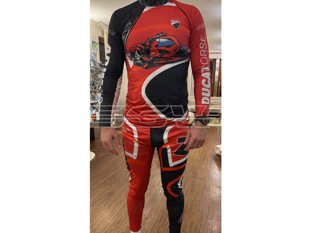 Univerzální funkční komplet ve dvojím provedení materiálu, s dlouhým rukávem a vlastním custom designem je navržené pro náročné sportovní aktivity – ať už jste na motorce, na tréninku nebo na výšlapu.